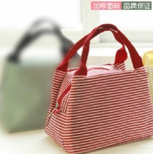 韩版帆布防水条纹便当包饭盒包袋-红色白领摆地摊