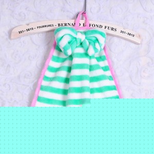 珊瑚绒蝴蝶结悬挂式厨房卫生间擦手毛巾-绿白条纹地摊网站