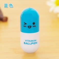 韩国可爱创意表情药丸伸缩圆珠笔-表情蓝色地摊产品批发