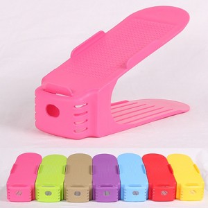 韩式加厚一体式鞋架简易塑料鞋架-粉色地摊商品