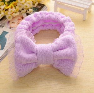 可爱蕾丝花边卖萌大蝴蝶结洗脸化妆束发巾-紫色地摊产品批发