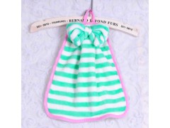 珊瑚绒蝴蝶结悬挂式厨房卫生间擦手毛巾-绿白条纹地摊网站