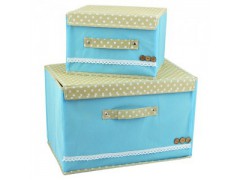 韩式扣扣收纳箱有盖两件套储物箱-蓝色地摊货源批发