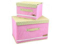 韩式扣扣收纳箱有盖两件套储物箱-粉红地摊货源