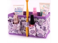 最新款的无坊布收盒,主要用于收纳化妆品,,产品除了一个收纳盒的位置外,侧面还有一个6格的收纳袋,可方便您放置各种化妆小物品。其实它也是一个小的杂物桶,您觉得需要整理收纳整理的,都可以使用它。不需要使用时可以折叠起来,不多占用空间。