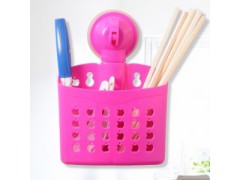 创意时尚吸盘双格筷子笼挂架-玫红北京地摊货批发