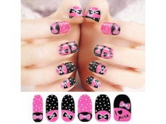 韩国指甲贴纸防水性感全甲闪粉美甲贴纸系列-粉蝴蝶结最新地摊产品