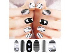韩国指甲贴纸防水性感全甲闪粉美甲贴纸系列-条纹爱心开心网 摆地摊